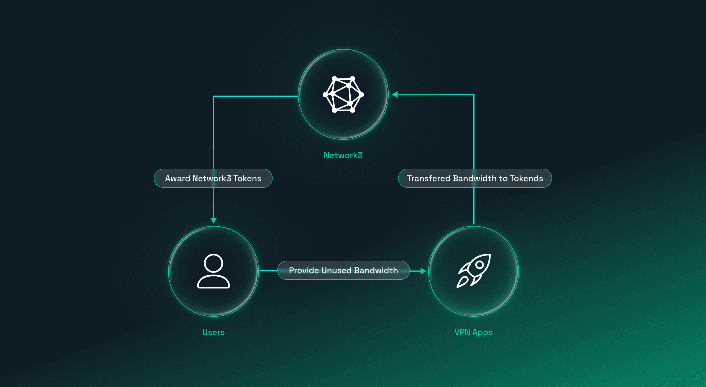 Network3 lets users earn crypto by sharing unused bandwidth with VPN apps.